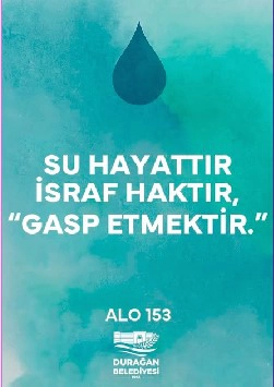 Durağan Belediyesi, su faturası ödememenin tasarruf değil “kul hakkı” ihlali olduğunu hatırlatarak, kaçak su kullananların tespit edilmesi halinde belediyeye bildirilmesinin bir ihbar değil, geleceğe sahip çıkma sorumluluğu olduğu belirtildi.